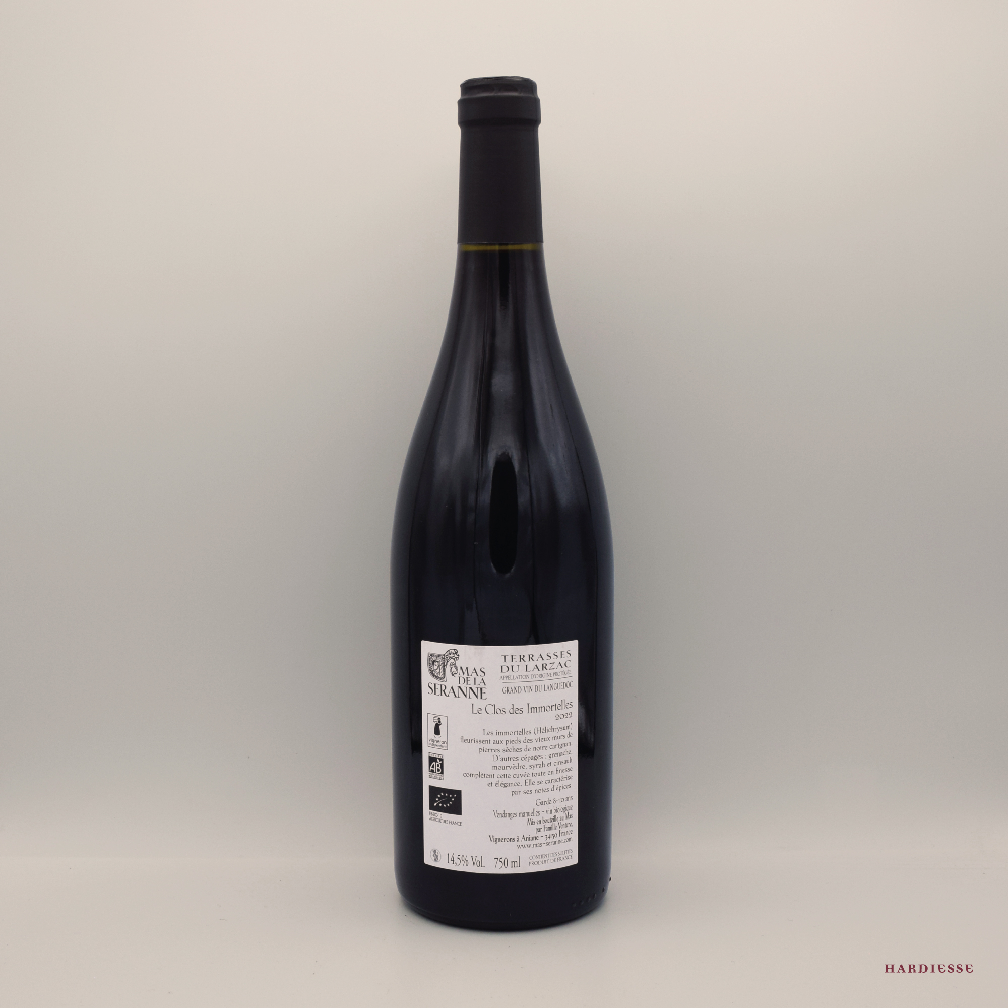 Cette cuvée tire son nom des fleurs, les immortelles, qui poussent dans la garrigue, non loin des vignes de Jean-Pierre Venture. Un assemblage de cépages typiques pour cette cuvée en AOC Terrasses du Larzac élevée environ 1 an en barriques de plusieurs vins. En bouche, du volume et de l’élégance, avec une finale reglissée pour accompagner viandes en sauce, daubes ou encore gibiers.